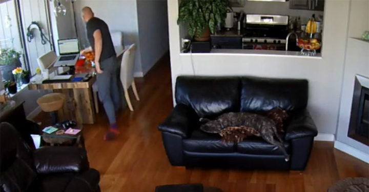 In fact, Apollo the dog was sleeping so well that falling off the couch didn’t even wake him up! His owner couldn’t believe it and decided to check up on him and thankfully he was alright!