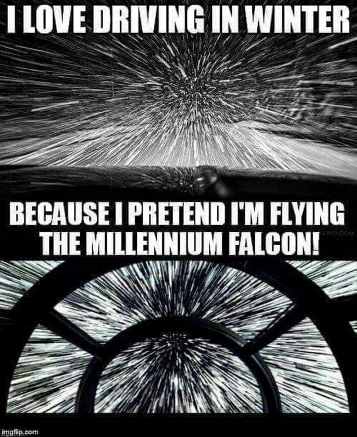 “I love driving in winter because I pretend I’m flying the Millenium Falcon!”