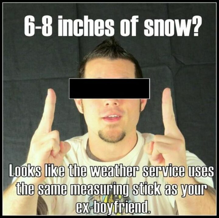 “6-8 inches of snow? Looks like the weather service uses the same measuring stick as your ex-boyfriend.”