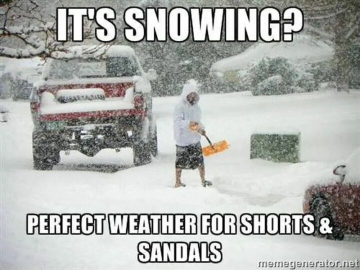 “It’s snowing? Perfect weather for shorts and sandals.”