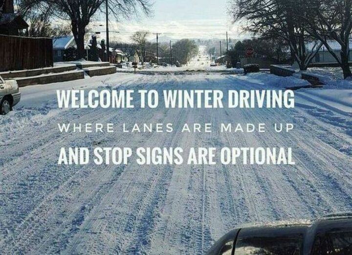 “Welcome to winter driving. Where lanes are made up and stop signs are optional.”