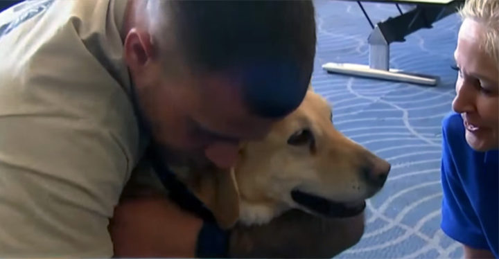 Please share this heartwarming moment when a soldier is reunited with his service dog with your friends and family.