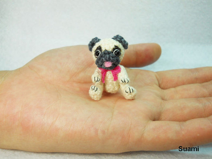 1) Tiny Crochet Animals: Tiny Pug with a pink bow.