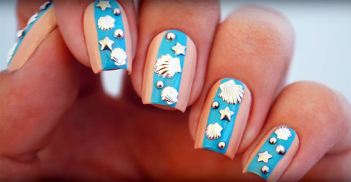 Watch how to create easy beach nails with this DIY nail design using studs!