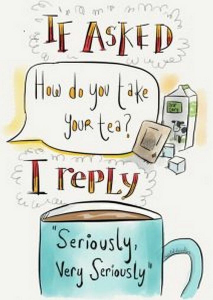 “If asked, ‘How do you take your tea?’ I reply, ‘Seriously, very seriously.'”