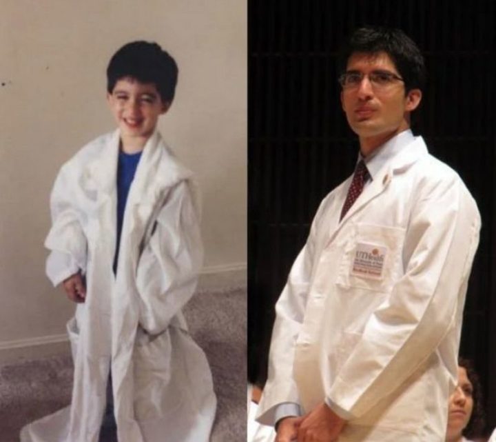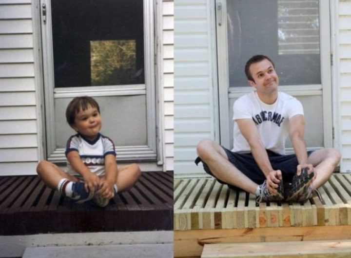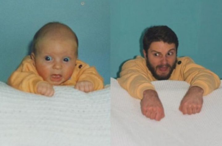 27) “Then and now pictures of my brother at age 4 and age 24.”