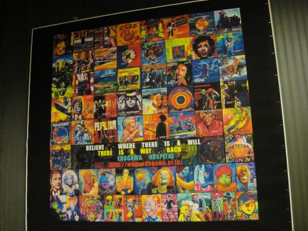 An inspirational painting for hospital patients that features classic album covers. “Where there is a will, there is a way”.