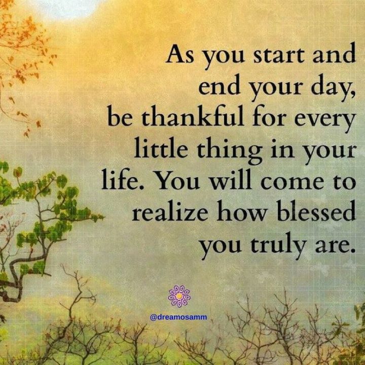 “As you start and end your day, be thankful for every little thing in your life. You will come to realize how blessed you truly are.”