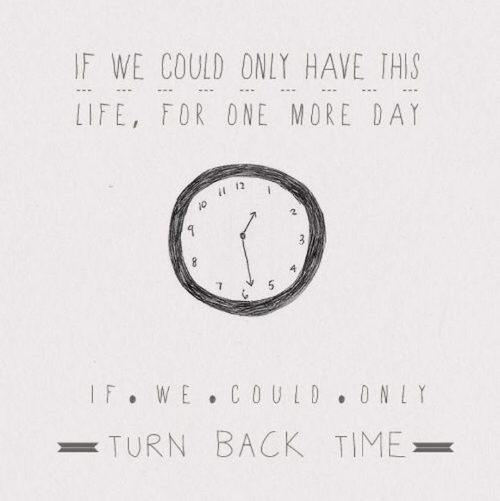“If we could only have this life, for one more day. If we could only turn back time.”