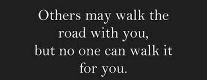 “Others may walk the road with you, but no one can walk it for you.”