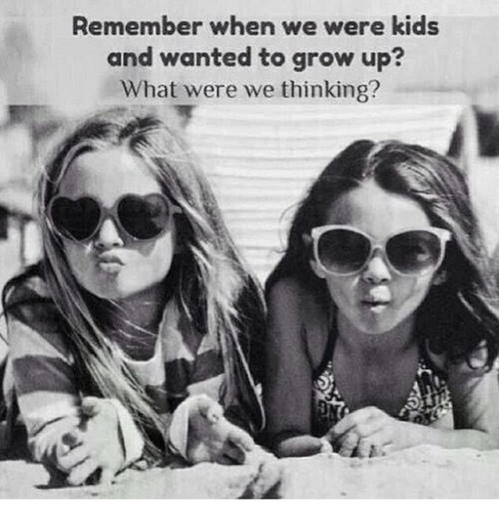 “Remember when we were kids and wanted to grow up? What were we thinking?”