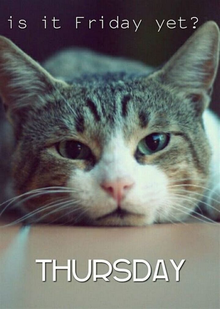 “Happy Thursday. Thankful that Friday is just around the corner.”