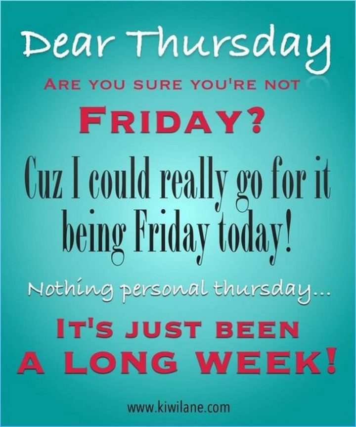 “Dear Thursday, are you sure you’re not Friday? Cuz I could really go for it being Friday today! Nothing personal Thursday…It’s just been a long week!”