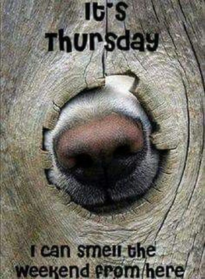 “Look! I can see the weekend right around the corner! Happy Thursday!”