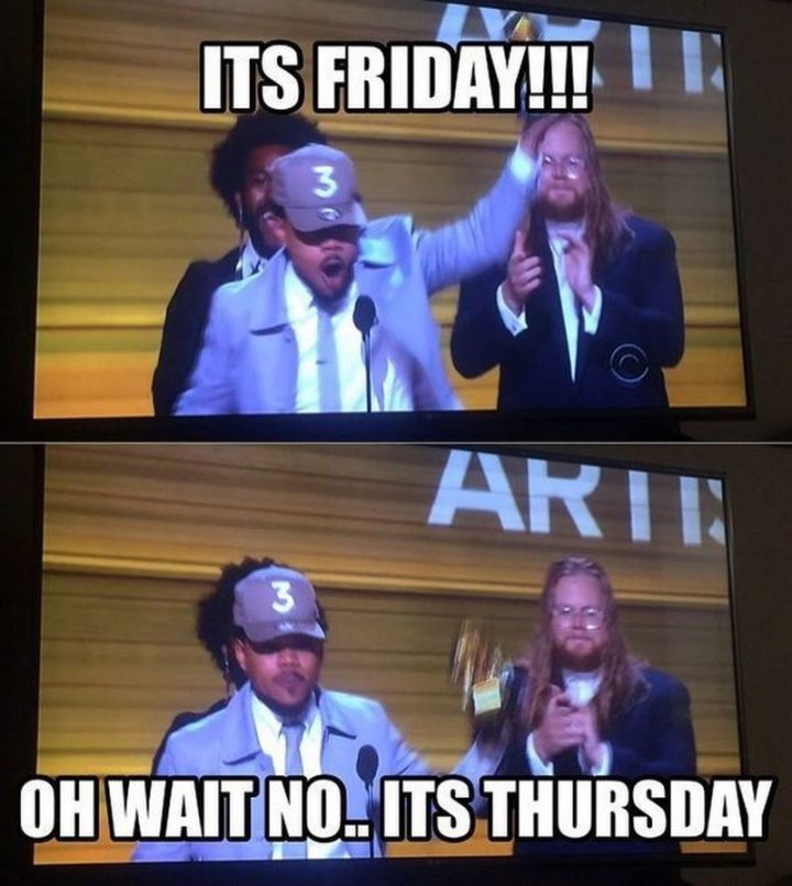 “It’s Friday!!! Oh, wait, no…It’s Thursday.”