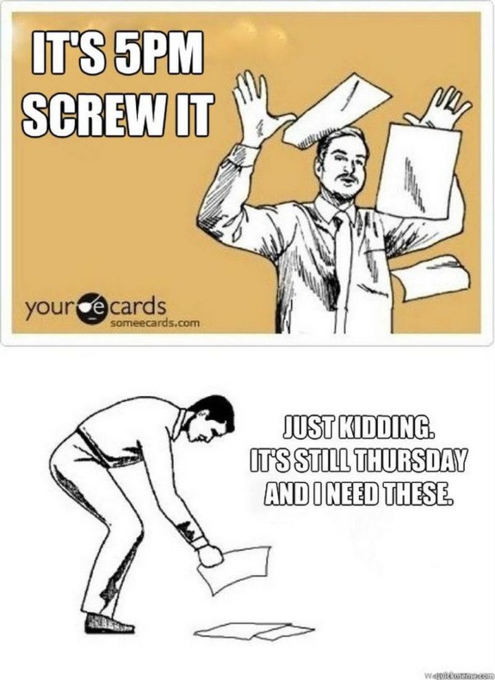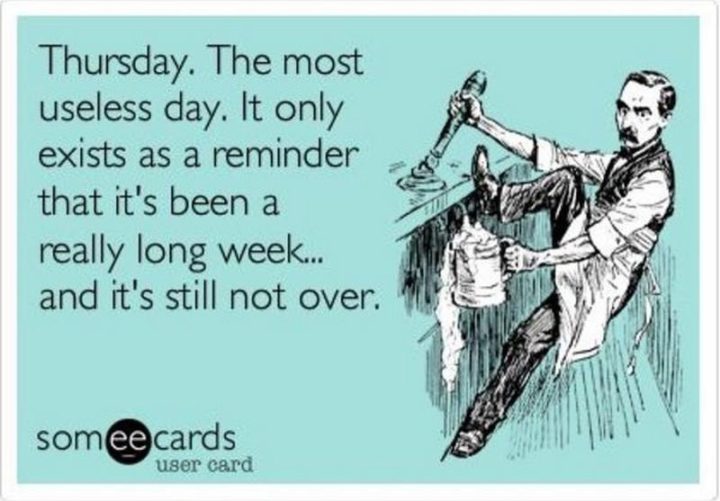 “Thursday. The most useless day. It only exists as a reminder that it’s been a really long week…and it’s still not over.”