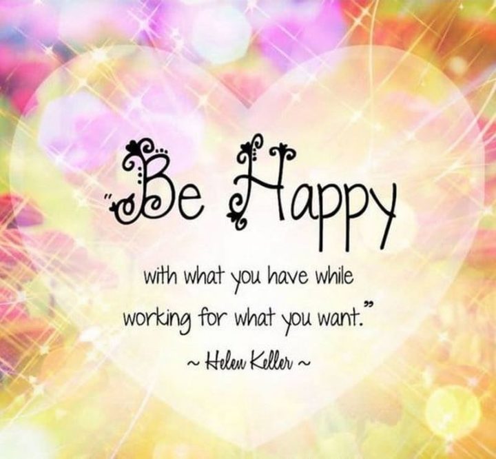 “Be happy with what you have while working for what you want.” – Helen Keller