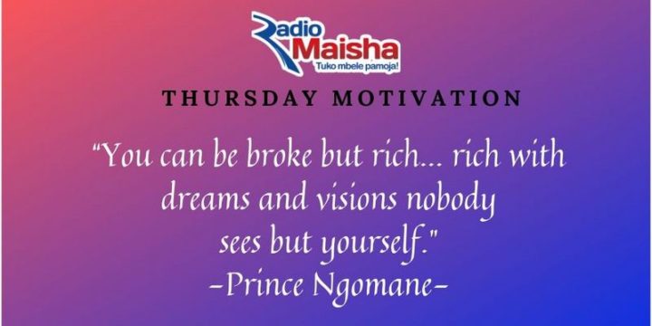 “You can be broke but rich…rich with dreams and visions nobody sees but yourself.” – Prince Ngomane