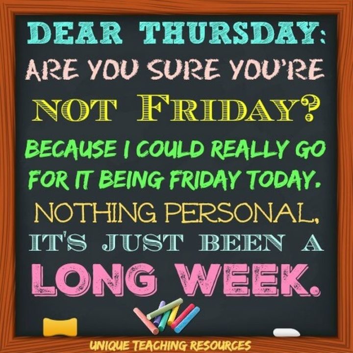 “Dear Thursday are you sure you’re not Friday? Because I could really go for it being Friday today! Nothing personal, it’s just been a long week.” – Unknown