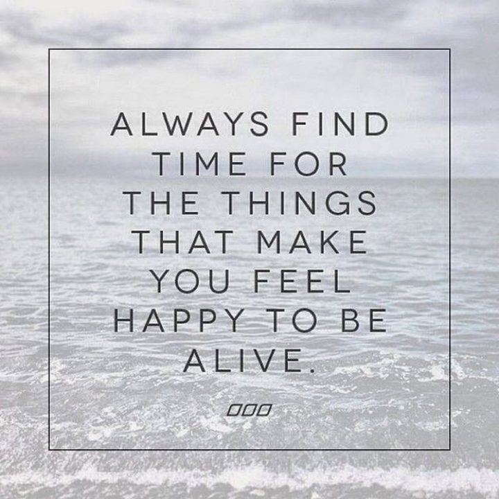 “Always find time for the things that make you feel happy to be alive.” – Unknown