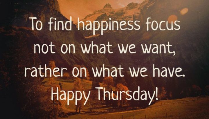 “To find happiness, focus not on what we want, rather on what we have. Happy Thursday!” – Unknown