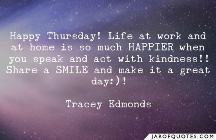 “Happy Thursday! Life at work and at home is so much HAPPIER when you speak and act with kindness. Share a smile and make it a great day!” – Tracey Edmonds