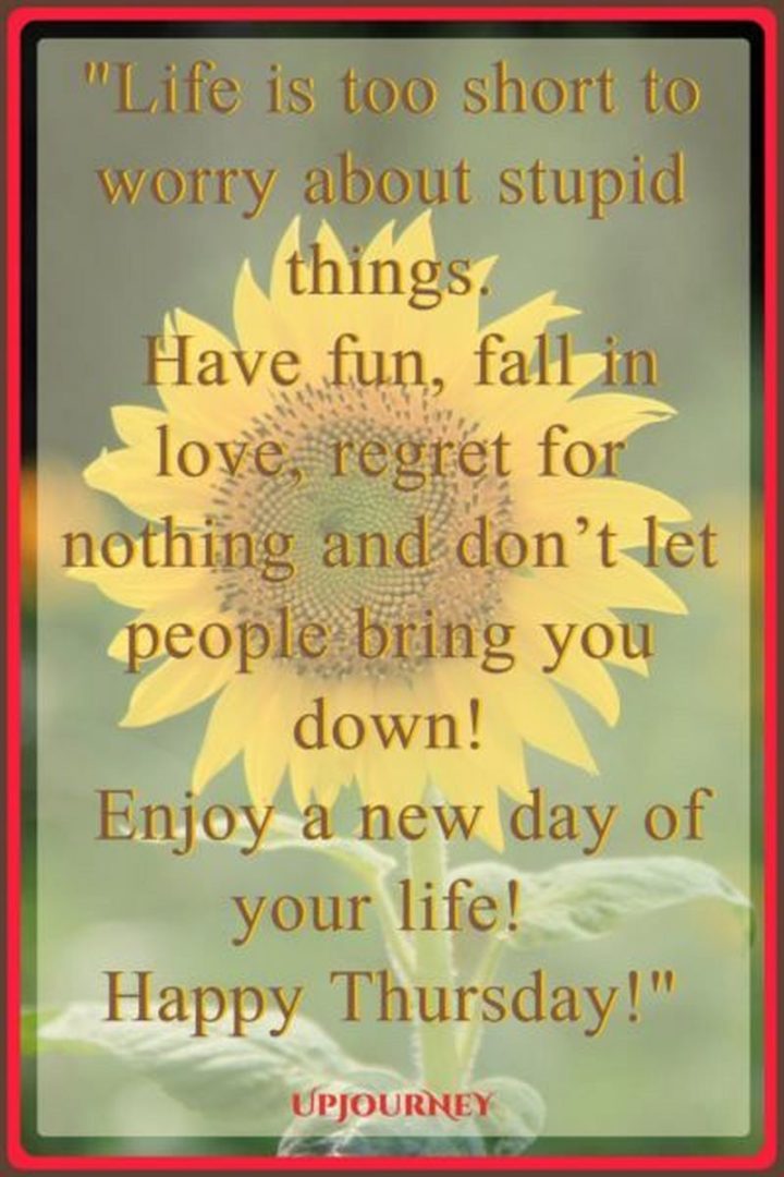 “Life is too short to worry about stupid things. Have fun, fall in love, regret nothing and don’t let people bring you down! Enjoy a new day of your life! Happy Thursday!” – Unknown