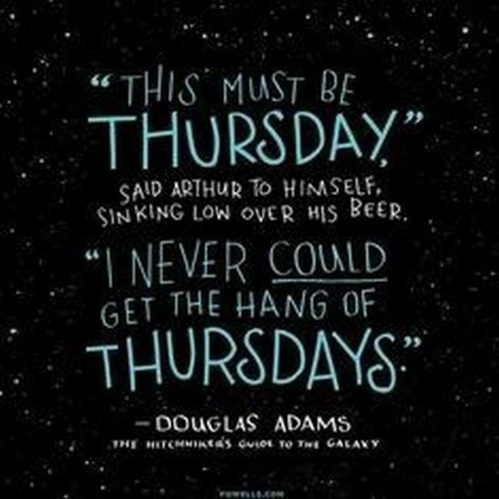 “This must be Thursday. I could never get the hang of Thursdays.” Douglas Adams
