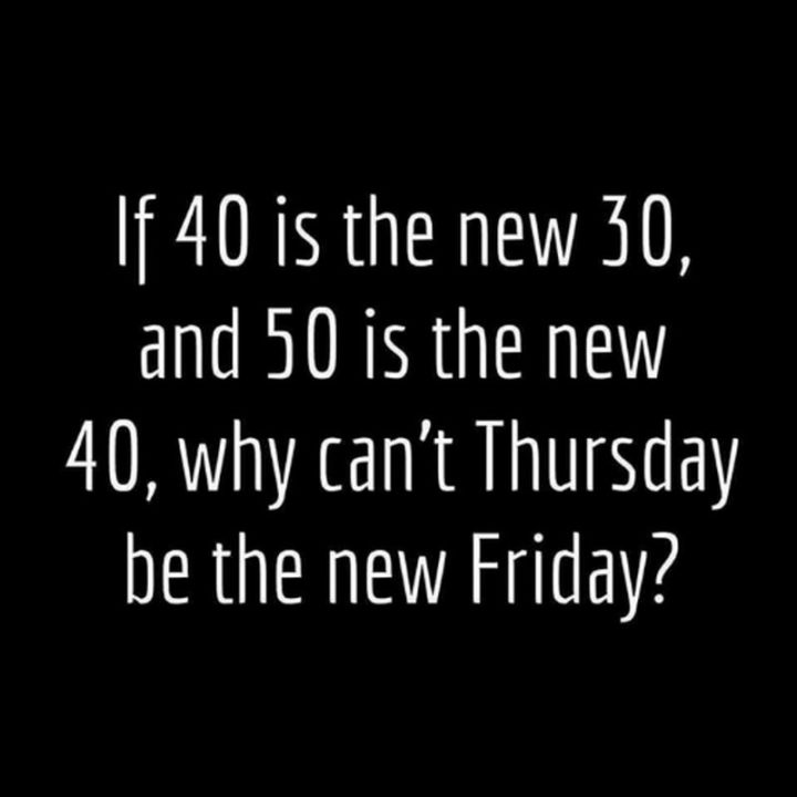 “If 40 is the new 30 and 50 is the new 40, why can’t Thursday be the new Friday?” – Unknown