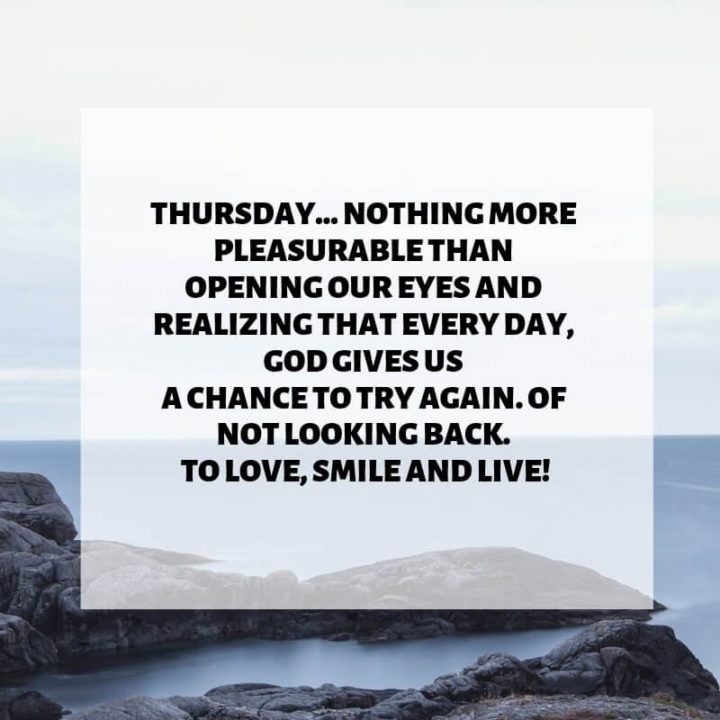 “Thursday…Nothing more pleasurable than opening our eyes and realizing that every day, God gives us a chance to try again. Of not looking back. To love, smile and live!” – Unknown