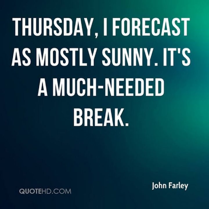 “Thursday, I forecast as mostly sunny. It’s a much-needed break.” – John Farley