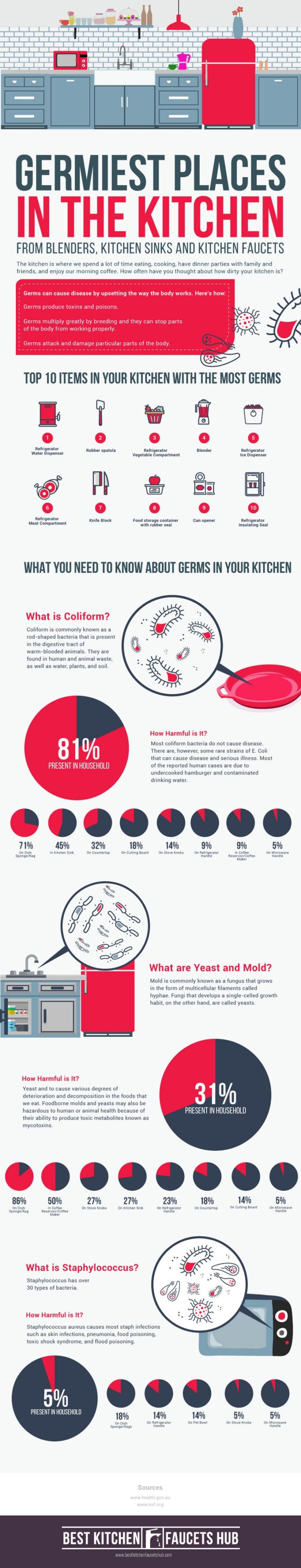 The kitchen is where we spend a lot of time eating, cooking, having dinner parties with family and friends, and enjoying our morning coffee. But did you know that some of the germiest places in the kitchen are kitchen sinks, kitchen faucets, and even your refrigerator! How often have you thought about how dirty your kitchen is?