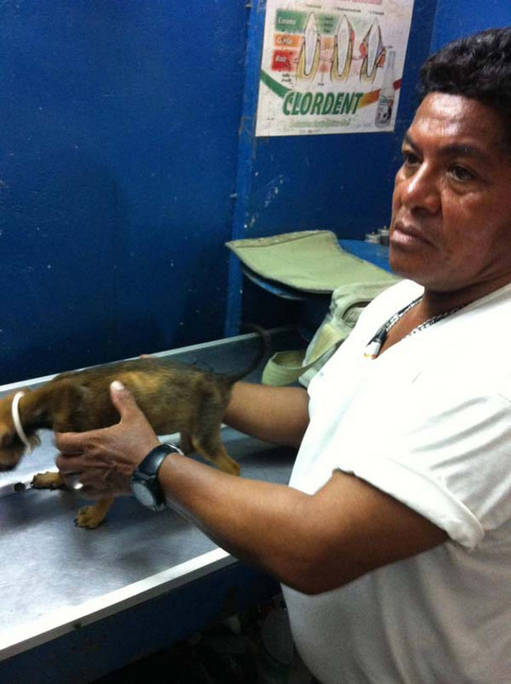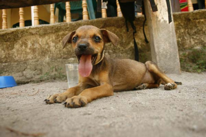 Tourists found a severely dehydrated, starving puppy on a hot beach in Colombia.