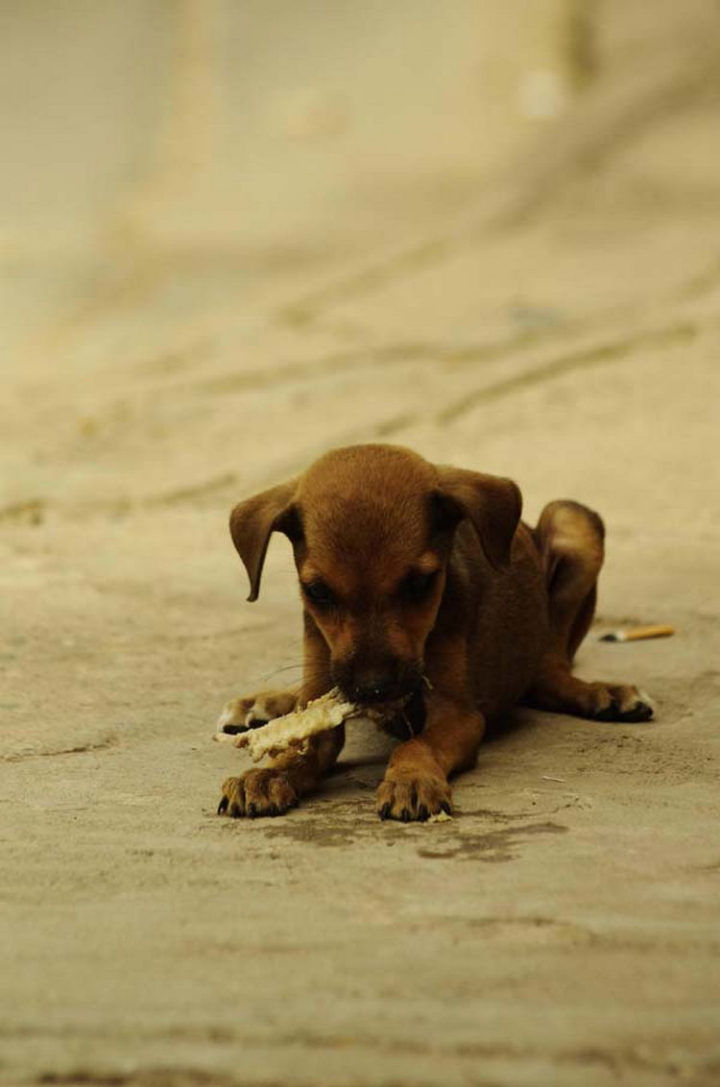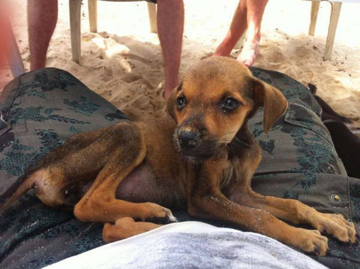 Tourists found a severely dehydrated, starving puppy on a hot beach in Colombia.