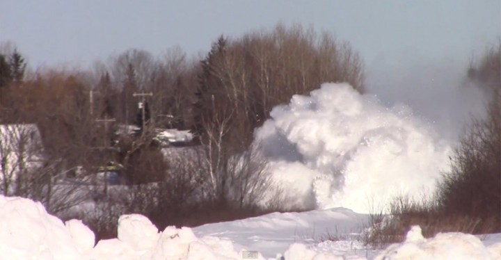 Watch this CN train plowing through the snow at a Salisbury, New Brunswick crossing…