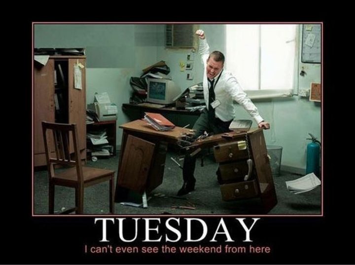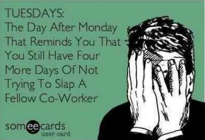 “TUESDAYS: The day after Monday that reminds you that you still have four more days of not trying to slap a fellow co-worker.”