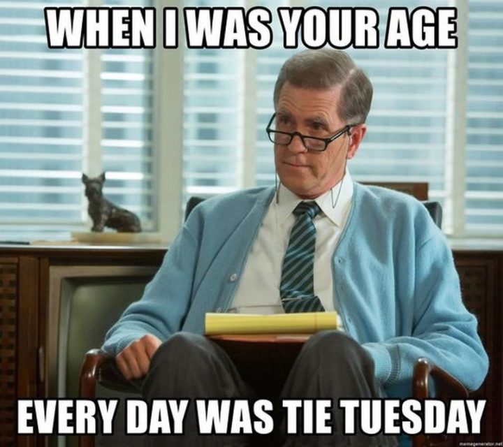 “When I was your age every day was tie Tuesday.”