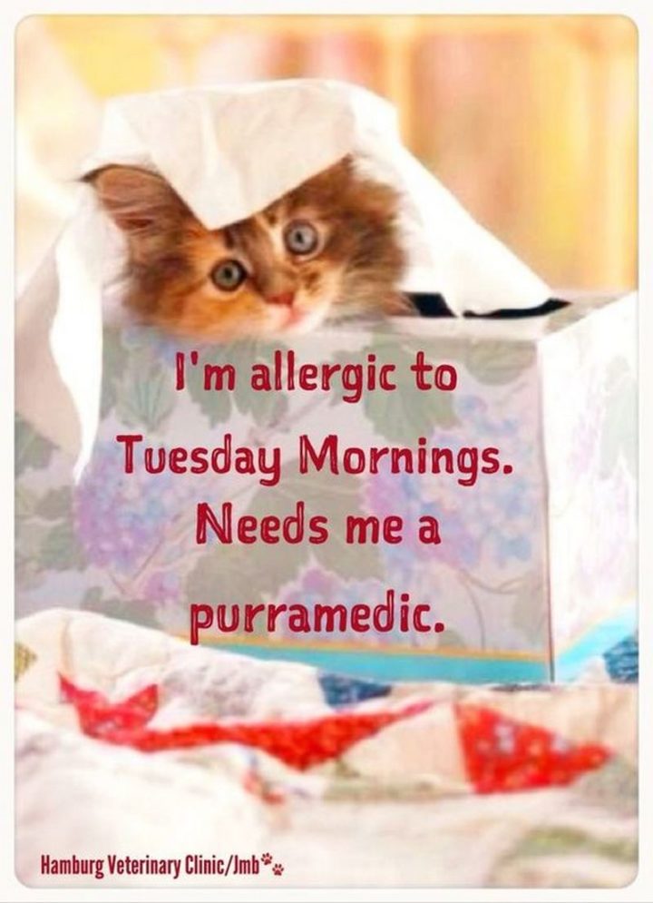 “I’m allergic to Tuesday morning. Needs me a paramedic.”