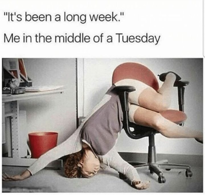 “‘ It’s been a long week. ‘ Me in the middle of a Tuesday.”