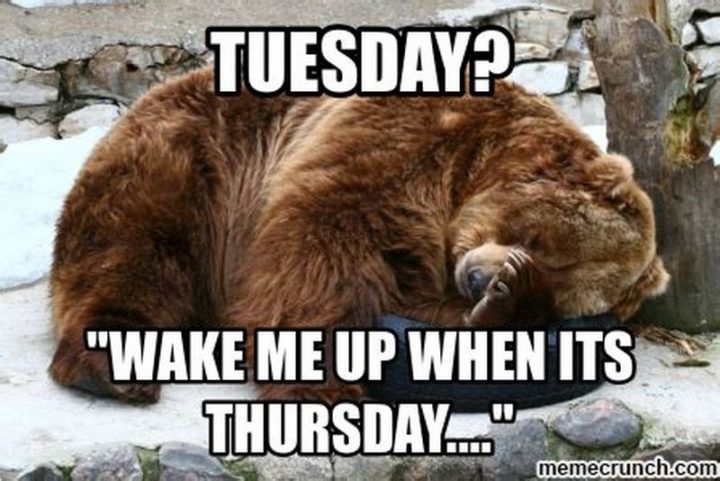 “Tuesday? Wake me up with it’s Thursday…”