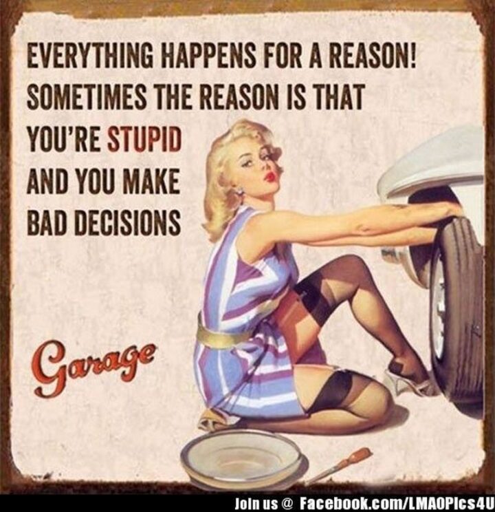 “Everything happens for a reason! Sometimes the reason is that you’re stupid and you make bad decisions.”