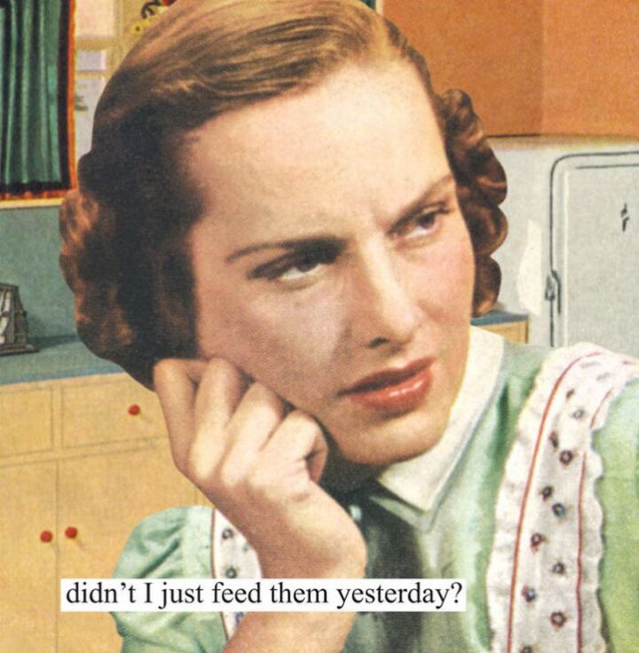 “Didn’t I just feed them yesterday?” Like this image? Order a fridge magnet.
