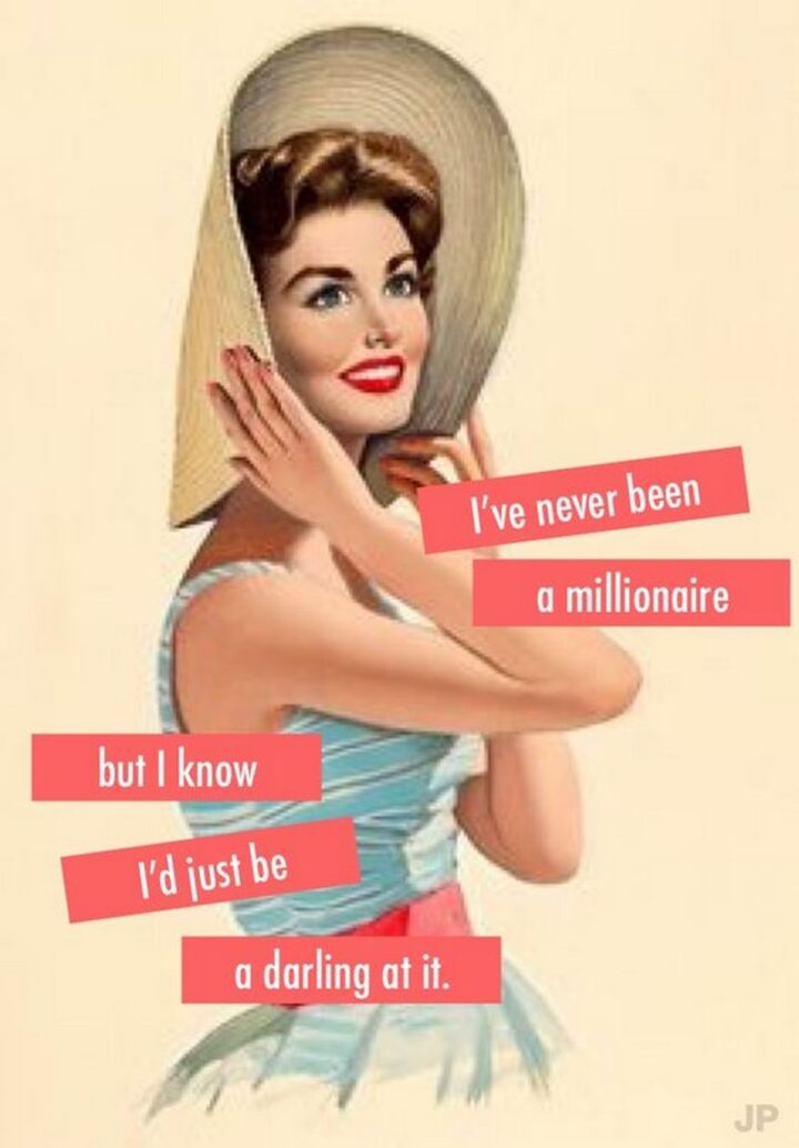 “I’ve never been a millionaire but I know I’d just be a darling at it.”