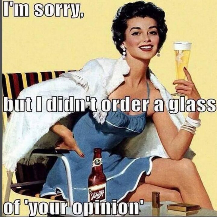 “I’m sorry, but I didn’t order a glass of your opinion.”