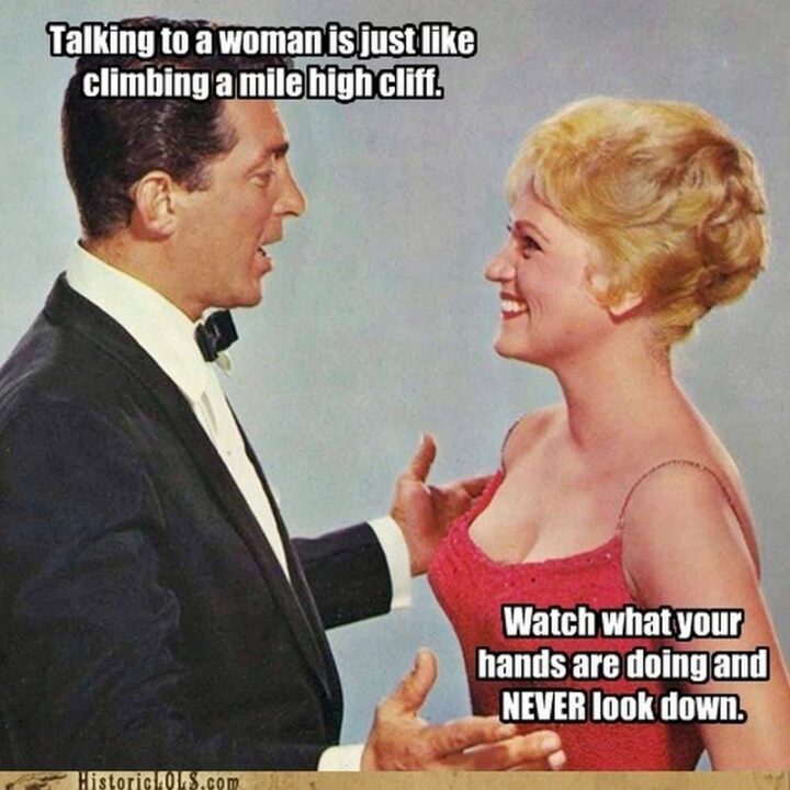 “Talking to a woman is just like climbing a mile-high cliff. Watch what your hands are doing and NEVER look down.”