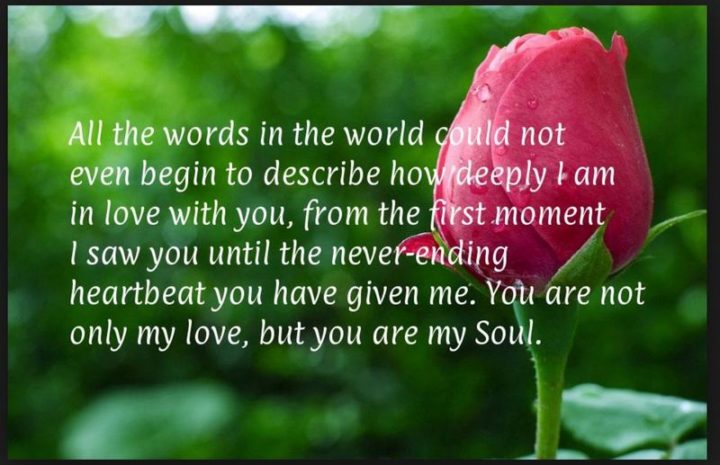 “All the words in the world could not even begin to describe how deeply I am in love with you, from the first moment I saw you until the never-ending heartbeat you have given me. You are not only my love, but you are my soul.”