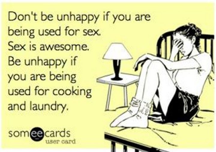 “Don’t be unhappy if you are being used for sex. Sex is awesome. Be unhappy if you are being used for cooking and laundry.”