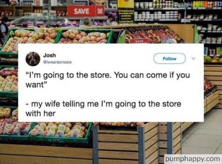 “My wife telling me I’m going to the store with her: I’m going to the store. You can come if you want.”