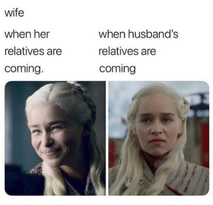 “Wife when her relatives are coming VS When husband’s relatives are coming.”