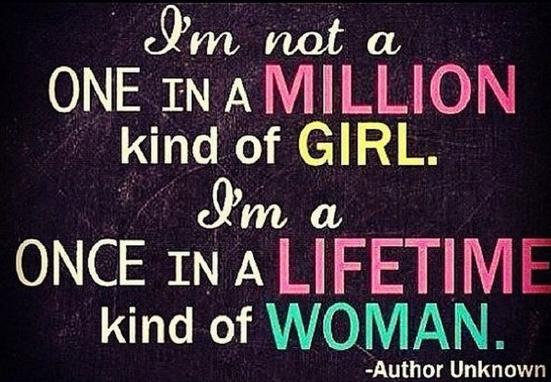 “I’m not a one-in-a-million kind of girl. I’m a once in a lifetime kind of woman.”
